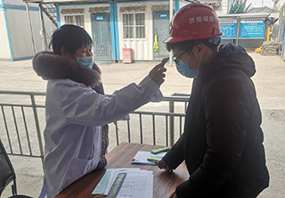 為進場人員測體溫及定期對辦公區(qū)、生活區(qū)進行消毒