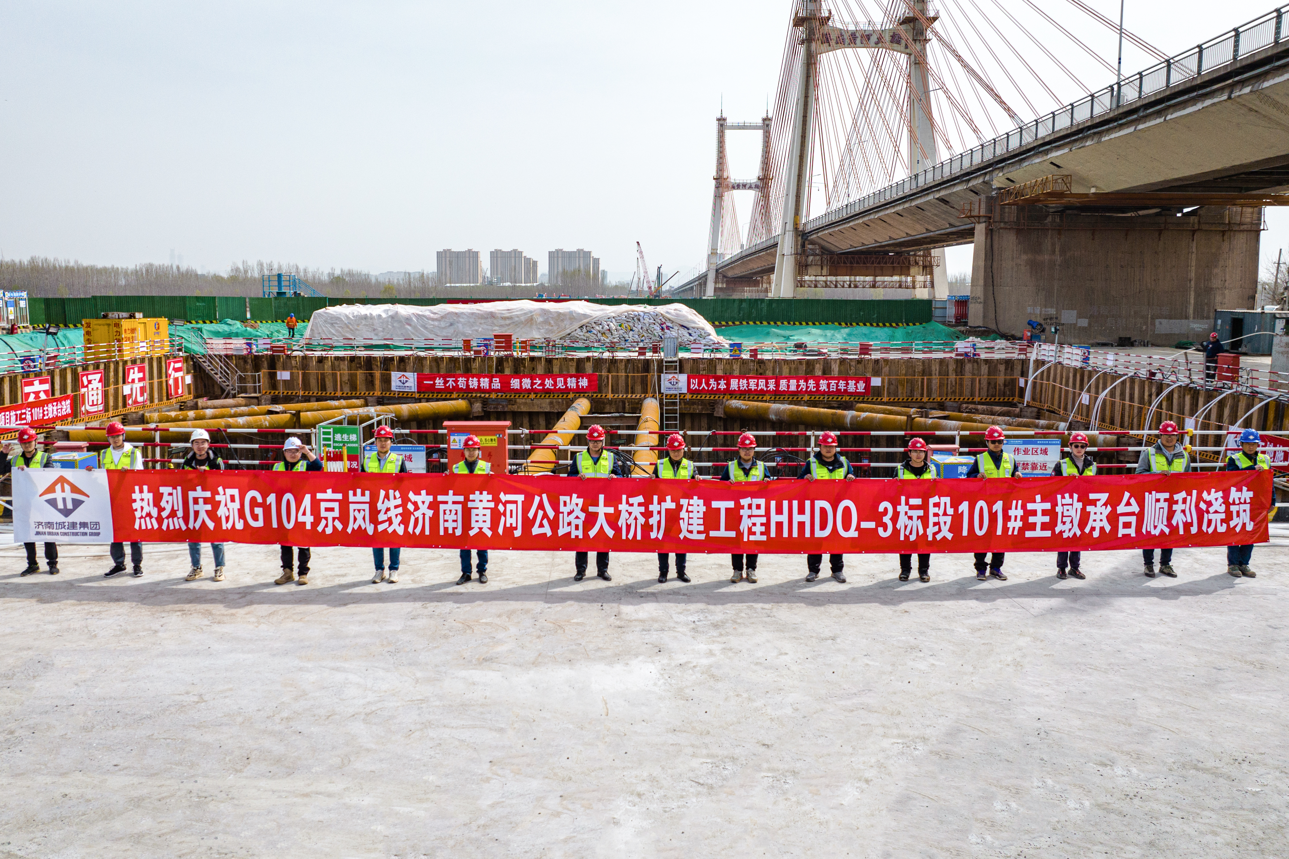 濟南黃河大橋擴建工程屬于公路工程,施工標(biāo)準(zhǔn)高、要求嚴(yán)。為確保工程順利推進,集團全面籌劃,選派了一支責(zé)任心強、工作認(rèn)真細(xì)致的項目管理團隊,該團隊具有豐富的特大橋施工經(jīng)驗,曾負(fù)責(zé)施工的宣城水陽江大橋工程成功榮獲“國家優(yōu)質(zhì)工程獎”。項目部每周召開調(diào)度會,制定明確的質(zhì)量、安全、進度目標(biāo),嚴(yán)格落實標(biāo)準(zhǔn)化管理,全方位提升管理水平,強化施工技術(shù)交底,把標(biāo)準(zhǔn)化刻到骨子里,以高標(biāo)準(zhǔn)、嚴(yán)要求樹立了良好形象。